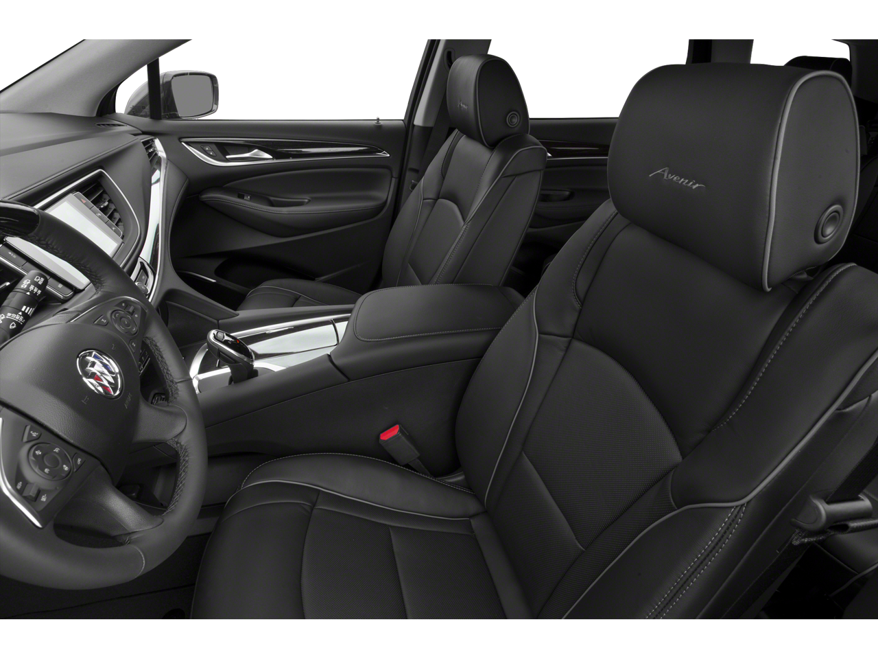 - Avenir Package Premium Package content plus: unique upper and lower grilles, wheels and front door badging; unique Chestnut/Ebony or Ebony interior color including seat stitching and piping; Avenir embroidered headrests and floor mats; bold script sill plates on all four doors; premium film decor accents; wood steering wheel; Buick Infotainment with Navigation; Wireless Charging; power dual moonroof with fixed rear skylight; 8" reconfigurable Driver Information Center; HD Surround Vision with full display Rear Camera Mirror and 6 exterior colors [White Frost Tricoat, Satin Steel Metallic, Champagne Gold Metallic, Dark Slate Metallic, Ebony Twilight Metallic and Rich Garnet Metallic]