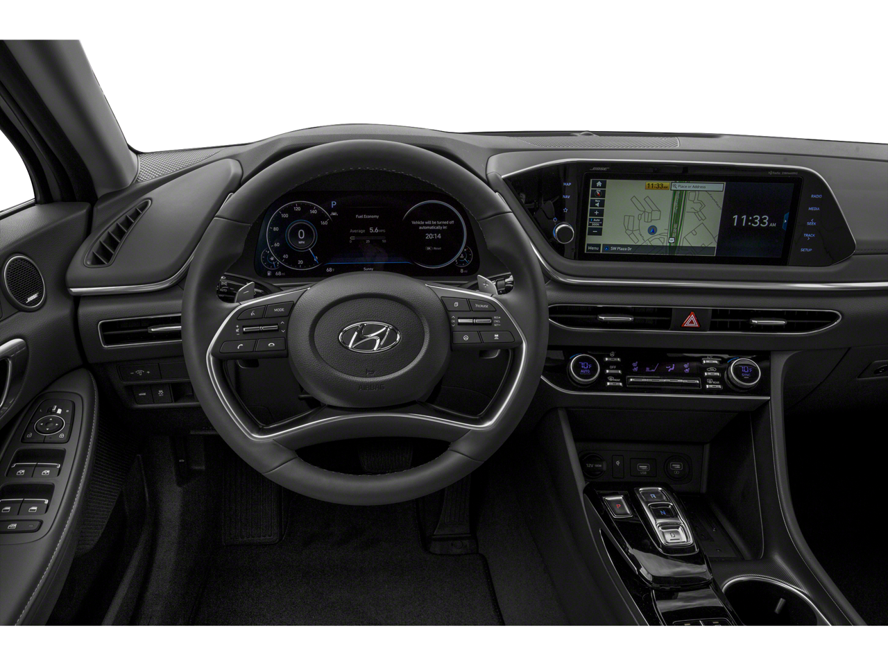 Black Leather, 12 Speakers, 4-Wheel Disc Brakes, ABS brakes, Air Conditioning, Alloy wheels, AM/FM radio: SiriusXM, Apple CarPlay & Android Auto, Auto High-beam Headlights, Auto-dimming Rear-View mirror, Automatic temperature control, Bose Premium Audio, Brake assist, Bumpers: body-color, Carpeted Floor Mats, Delay-off headlights, Driver door bin, Driver vanity mirror, Dual front impact airbags, Dual front side impact airbags, Electronic Stability Control, Emergency communication system: Blue Link Connected Car Service (3-year complimentary subscription), Four wheel independent suspension, Front anti-roll bar, Front Bucket Seats, Front Center Armrest, Front dual zone A/C, Front reading lights, Fully automatic headlights, Garage door transmitter: HomeLink, Heads-Up Display, Heated door mirrors, Heated front seats, Heated steering wheel, Heated/Ventilated Front Bucket Seats, Illuminated entry, Knee airbag, Leather Seating Surfaces, Low tire pressure warning, Memory seat, Navigation System, Occupant sensing airbag, Option Group 01, Outside temperature display, Overhead airbag, Overhead console, Panic alarm, Passenger door bin, Passenger vanity mirror, Power door mirrors, Power driver seat, Power moonroof, Power passenger seat, Power steering, Power windows, Radio data system, Radio: AM/FM/MP3/HD/SiriusXM Display Audio w/Nav, Rain sensing wipers, Rear anti-roll bar, Rear seat center armrest, Rear side impact airbag, Rear window defroster, Remote keyless entry, Reversible Cargo Tray, Security system, Speed control, Speed-sensing steering, Speed-Sensitive Wipers, Split folding rear seat, Steering wheel mounted audio controls, Tachometer, Telescoping steering wheel, Tilt steering wheel, Traction control, Trip computer, Turn signal indicator mirrors, Variably intermittent wipers, Ventilated front seats, Wheels: 18 x 7.5J Aluminum Alloy, Wireless Device Charging, Black Leather. 2021 Hyundai Sonata 8-Speed Automatic with Overdrive I4 Hampton Gray
