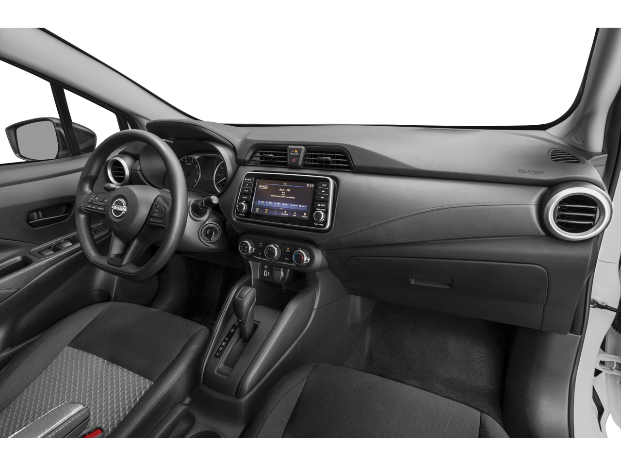 15 Steel Wheels w/Full Wheel Covers, 4 Speakers, ABS brakes, Air Conditioning, AM/FM radio, Auto High-beam Headlights, Brake assist, Bumpers: body-color, Carpeted Floor Mats, Cloth Seat Trim, Driver door bin, Driver vanity mirror, Dual front impact airbags, Dual front side impact airbags, Electronic Stability Control, Front anti-roll bar, Front Bucket Seats, Front reading lights, Front wheel independent suspension, Fully automatic headlights, Illuminated entry, Knee airbag, Low tire pressure warning, Occupant sensing airbag, Outside temperature display, Overhead airbag, Panic alarm, Passenger door bin, Passenger vanity mirror, Power door mirrors, Power steering, Power windows, Radio data system, Radio: AM/FM Audio System, Rear Parking Sensors, Rear side impact airbag, Rear window defroster, Shopping Bag Hooks, Speed control, Splash Guards, Steering wheel mounted audio controls, Tachometer, Telescoping steering wheel, Tilt steering wheel, Traction control, Trip computer, Trunk Net, Trunk Package, Variably intermittent wipers. 2024 Nissan Versa CVT 1.6L I4 DOHC 16V CARFAX One-Owner. Super Black