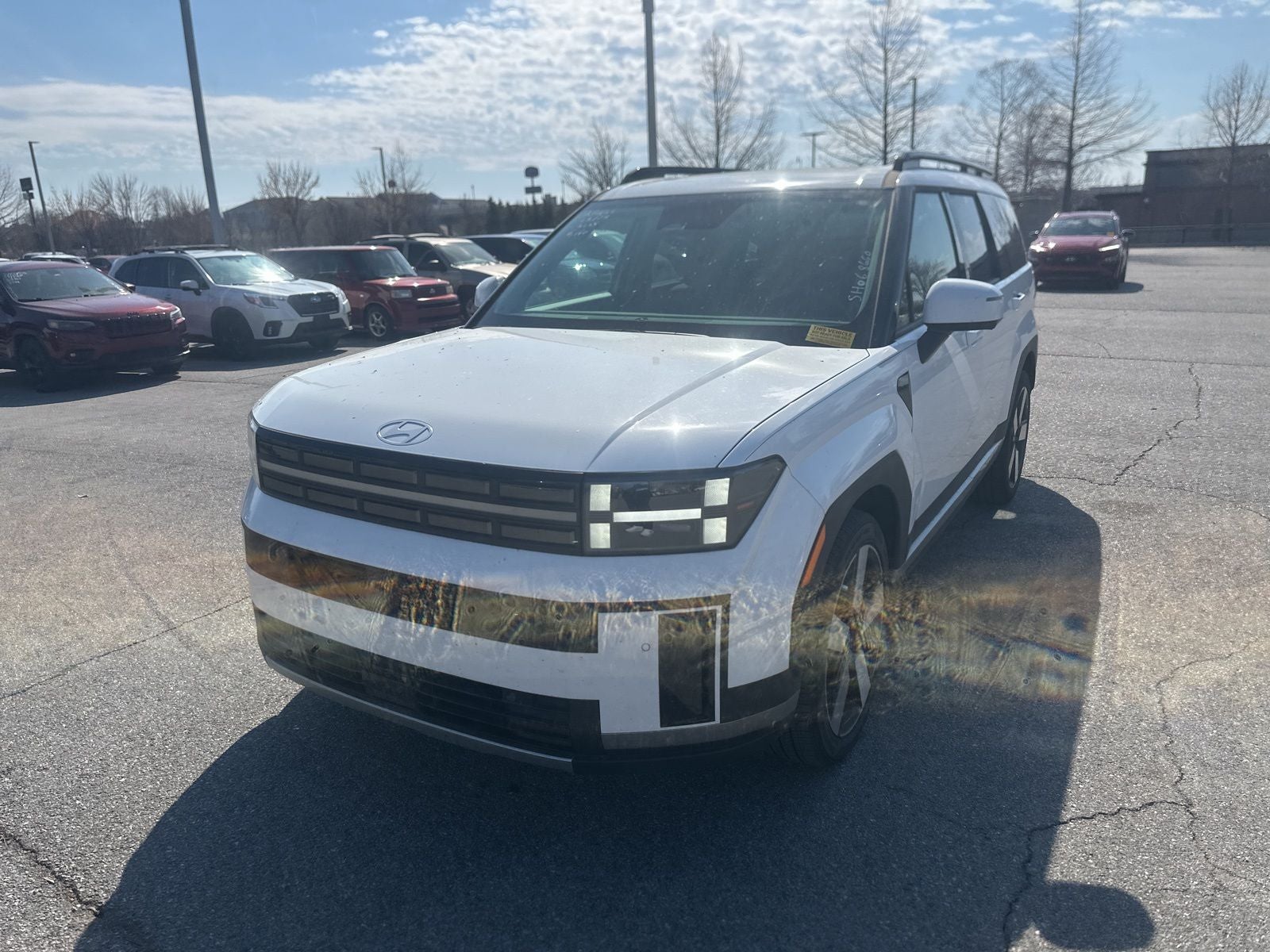 AWD, Black Leather, 12 Speakers, 3rd row seats: bench, 4-Wheel Disc Brakes, ABS brakes, Air Conditioning, Alloy wheels, AM/FM radio: SiriusXM, Apple CarPlay & Android Auto, Auto High-beam Headlights, Auto-dimming Rear-View mirror, Automatic temperature control, Brake assist, Bumpers: body-color, Cargo Cover, Carpeted Floor Mats, Delay-off headlights, Driver door bin, Driver vanity mirror, Dual front impact airbags, Dual front side impact airbags, Electronic Stability Control, Emergency communication system, Exterior Parking Camera Rear, First Aid Kit, Four wheel independent suspension, Front anti-roll bar, Front Bucket Seats, Front Center Armrest, Front dual zone A/C, Front reading lights, Fully automatic headlights, Garage door transmitter: HomeLink, Heated & Ventilated Front Bucket Seats, Heated door mirrors, Heated front seats, Heated rear seats, Heated steering wheel, Illuminated entry, Knee airbag, Leather Seat Trim, Leather steering wheel, Low tire pressure warning, Memory seat, Navigation System, Occupant sensing airbag, Option Group 01, Outside temperature display, Overhead airbag, Overhead console, Panic alarm, Passenger door bin, Passenger vanity mirror, Power door mirrors, Power driver seat, Power Liftgate, Power moonroof, Power passenger seat, Power steering, Power windows, Radio: AM/FM/HD Bose Premium Audio System, Rain sensing wipers, Rear anti-roll bar, Rear seat center armrest, Rear side impact airbag, Rear window defroster, Rear window wiper, Remote keyless entry, Security system, Speed control, Speed-sensing steering, Split folding rear seat, Spoiler, Steering wheel mounted audio controls, Tachometer, Telescoping steering wheel, Tilt steering wheel, Traction control, Trip computer, Turn signal indicator mirrors, Variably intermittent wipers, Ventilated front seats, Wheels: 20 x 8.5J Alloy, AWD, Black Leather. 2025 Hyundai Santa Fe Shiftronic 2.5L I4 CARFAX One-Owner. Serenity White